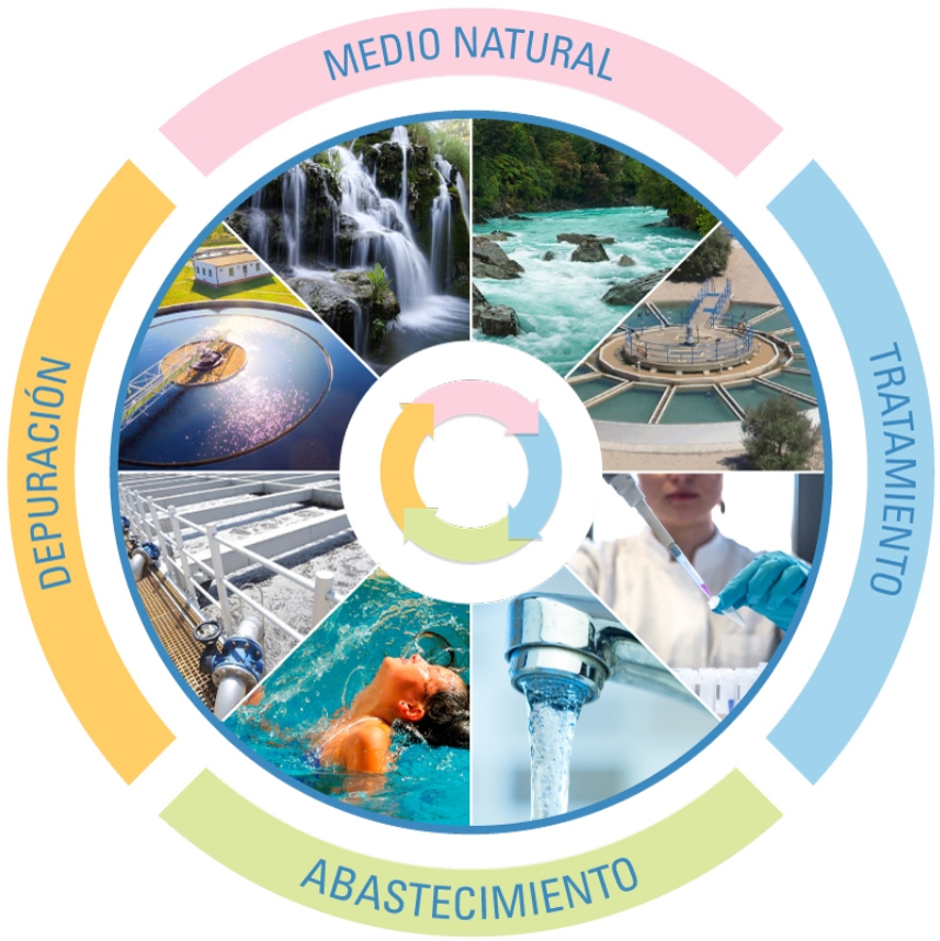 El ciclo integral del agua consiste en el conjunto de procesos que permiten gestionar el agua de forma sostenible desde su captación en la naturaleza hasta su uso, tratamiento y devolución al medio ambiente.